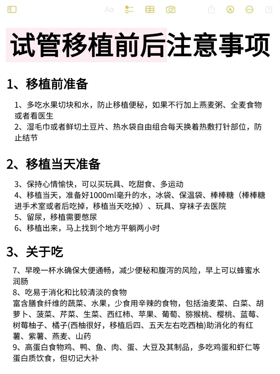 为了大家准备充足后移植,整理了一份注意事项总结